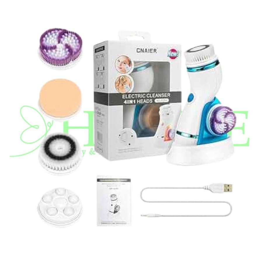 يأتي الجهاز مع 4 رؤوس مختلفة لتغطية جميع احتياجات العناية بالبشرة مثل التنظيف العميق، التقشير، توزيع الكريمات، والمساج.