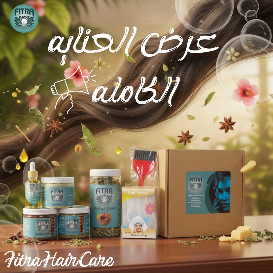 عرض مجموعة علاج تساقط الشعر الطبيعي هو حل متكامل لكل اللي بيعانوا من تساقط الشعر، ضعف البصيلات أو بطء النمو. المجموعة بتجمع بين السدر 100 جرام ، المشاط 100 جرام، نواة التمر 100 جرام، مغلي الأعشاب100 جرام، والعشر زيوت الطبيعية 30 ملي يكفوا شهرين كاملين لتغذية فروة الرأس وتحفيز نمو الشعر بطريقة آمنة وطبيعية.