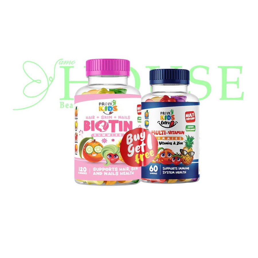 احصل الآن على محسن بال للأطفال ProfiKids Biotin Gummies مع Multivitamin Gummies في عرض مميز 1+1 مجانًا، لدعم صحة طفلك من الداخل والخارج.
