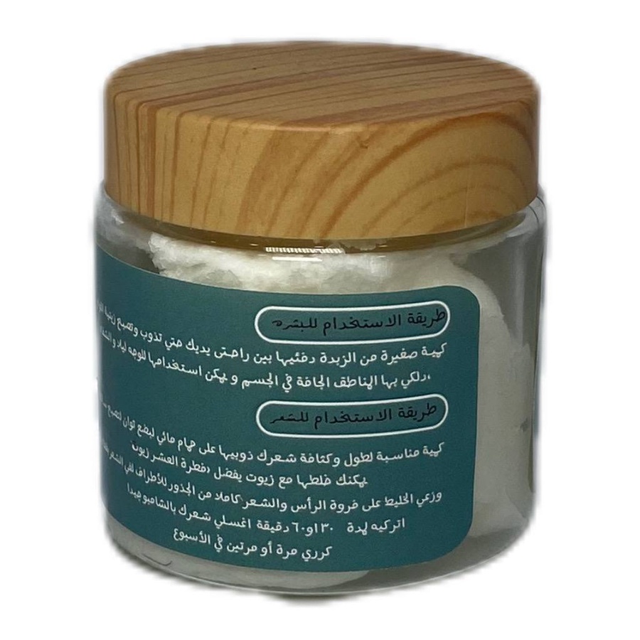 تُستخدم كمرطب طبيعي متعدد الاستخدامات للبشرة والشعر، وتتميز بقوام غني يذوب بسهولة على حرارة الجسم ليتغلغل ويرطب بعمق دون إحساس دهني مزعج عند استخدام كمية مناسبة.