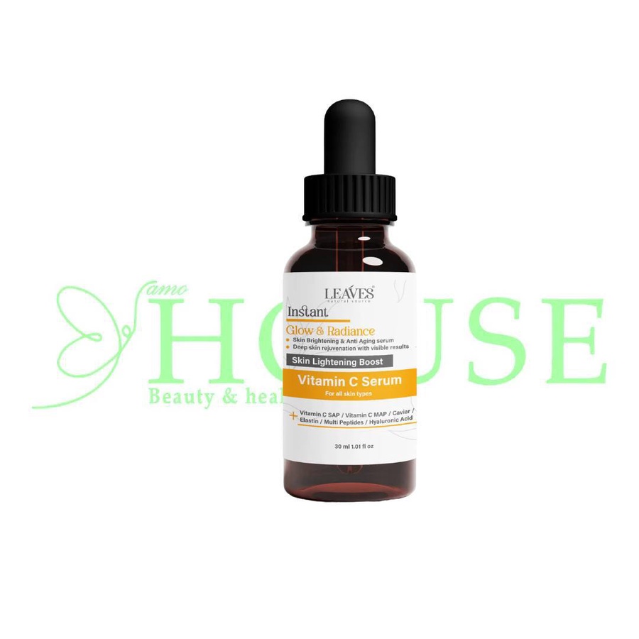يعد سيروم فيتامين سي (Glow & Radiance) من Leaves Natural Source معززاً مثالياً لنضارة البشرة (Skin Lightening Boost). يتميز بتركيبة متطورة تعمل على تفتيح لون البشرة وتوحيدها مع مكافحة علامات الشيخوخة، مما يمنحكِ إشراقة فورية ومظهراً حيوياً بفضل المكونات الفاخرة التي تتغلغل في أعماق الجلد.