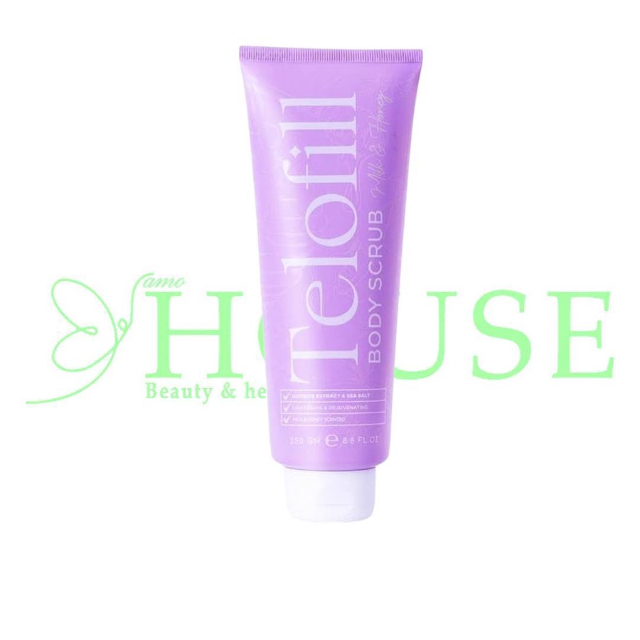 ج.ميُعد تيلوفيل بودي سكراب (Milk & Honey) مزيجاً فاخراً يجمع بين فوائد التقشير الطبيعي وقوة التفتيح. صُمم هذا المقشر ليزيل خلايا الجلد الميتة بلطف، مما يمنح بشرتك الفرصة لتجديد نفسها واستعادة إشراقتها الطبيعية. بفضل تركيبته الغنية، يترك جسمك ناعماً كالحرير ومعطراً برائحة الحليب والعسل الدافئة التي تمنحك شعوراً بالراحة والتدليل.